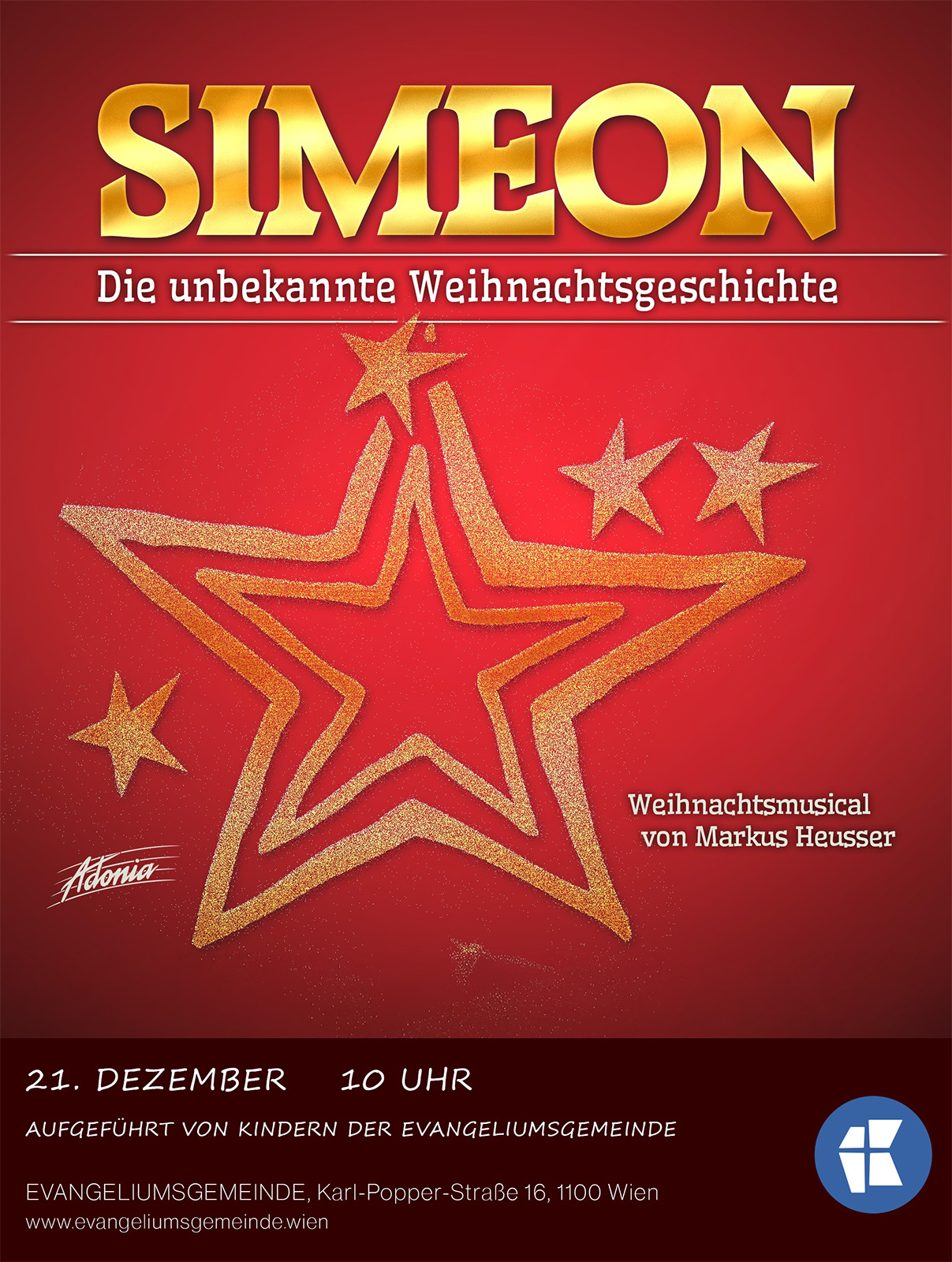 Das Weihnachtsmusical „Simeon, die unbekannte Weihnachtsgeschichte“ wird im Rahmen unseres Gottesdienstes am 21. Dezember um 10 Uhr von Kindern aus unserer Gemeinde aufgeführt. Komm vorbei, lass dich berühren und erlebe Weihnachten einmal neu!